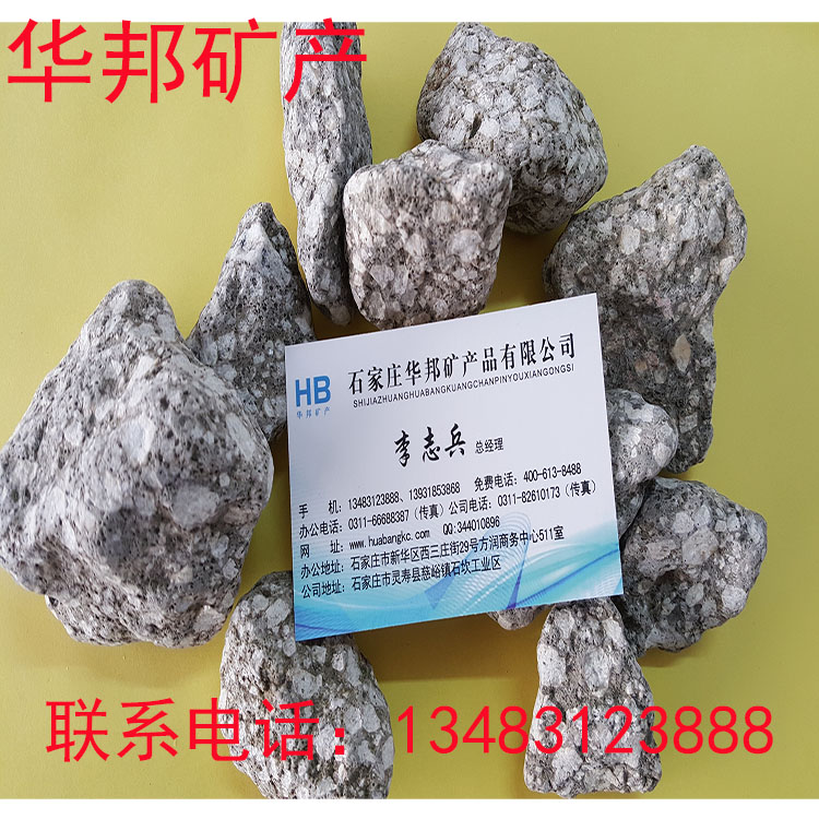 石家莊華邦礦產品有限公司是集生產、加工、銷售于一體的建材企業,公司位于河北省靈壽縣慈峪鎮石坎工業區,距河北省會石家莊50公里,距首都北京260公里,交通、通訊便利,礦產資源豐富,我公司分建加工、包裝、倉儲等車間,并擁有現代化的生產和化驗檢測設備。我公司充分利用當地的地理優勢和資源優勢,并引進現代先進的生產工藝,并聘請行業的專家實行科學管理,建立了多層管理體系,對產品質量嚴格把關,絕對保證交貨期和發貨相關服務。我們現已和多家國內外生產單位、貿易單位建立了長期的合作關系。
